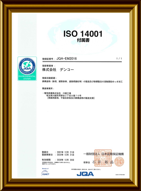 「溶融亜鉛めっき」のJIS表示制度の更新が完了致しました。